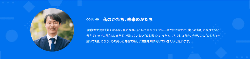 社員インタビュー内でも「私のかたち、未来のかたち」というタイトルでコメントを掲載。