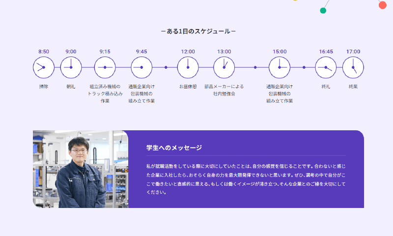 社員インタビューの最後には、1日のスケジュールも掲載。